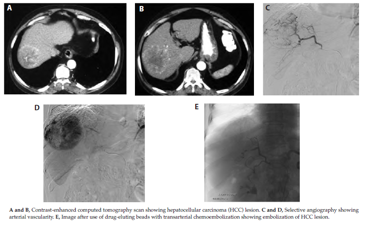Hepatocellular carcinoma (HCC) is one of the most common causes of cancer-related deaths worldwide. Curative treatments include surgical resection and liver transplant. In its earlier stages, surgical treatment (resection or liver transplant) may lead to longer survival, but surgical procedures are reserved for a reduced number of patients because of comorbidities, concomitant complications of liver cirrhosis itself, specific contraindications to liver transplant, and shortages of livers from deceased donors.1 Locoregional therapies are widely used to treat patients with HCC. There are 3 primary interventional radiologic treatment methods for HCC: (1) percutaneous ablative procedures, (2) chemoembolization, and (3) radioembolization.2,3