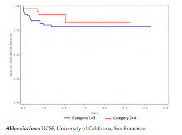 Figure 3. Comparison of Survival in Patients Within the UCSF Criteria, With (Group 2+4) and Without (Group 1+3) Locoregional Therapy