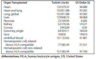 Table 1. Payments Made by the Turkish Social Security Association for Different Types of Organ Transplants