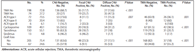 Table 3. Correlation of C4d and Thrombotic Microangiopathy With Clinicopathologic Parameters