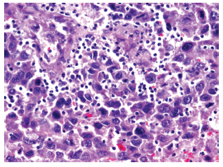 Figure 6. Hepatocellular Carcinoma With Presence of Large Hyperchromic, Atypical Nuclei With Pronounced Amount Mitosis (hematoxylin and eosin staining; ×200)