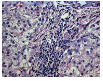 Figure 4. Recurrent Hepatitis B with Hepatitis D Virus (hematoxylin and eosin, ×200)