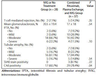 Table 3. Pathologic Parameters of Biopsies Showing Chronic Active Antibody-Mediated Rejection in Both Groups