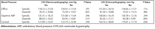 Table 7. Peripheral and Central Aortic Blood Pressure According to Left Ventricular Hypertrophy