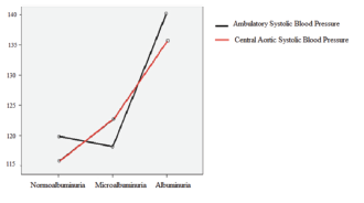 Figure 1. Relationship Between Albuminuria and Levels of Ambulatory and Aortic Systolic Blood Pressures