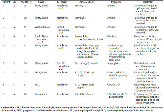 Table 1. Clinical Characteristics of Pediatric Liver Transplant Patients