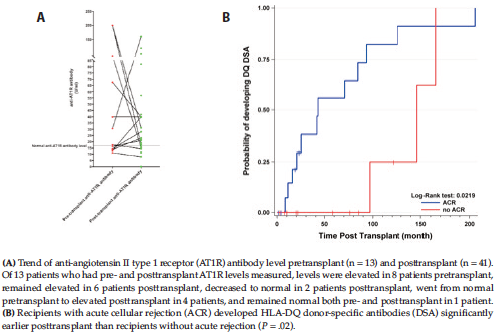 testing. Of 42 recipients, 20 (47.6%) had anti-HLA DSAs, mostly to class II HLA.