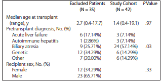 We acknowledge that there were missing data in our study cohort, specifically anti-HLA and non-HLA antibodies pretransplant. There were patients who had sera collected, but unfortunately the amount was insufficient to complete all measurements. Despite these limitations, we feel it is important to be transparent about our missing data and report this in the results, especially because we believe our study adds to the pediatric liver transplant literature and also has relevance to adult liver transplant. We also acknowledge that some recipients were excluded due to lack of measurement of anti-HLA DSAs. Despite this limitation, we believe our results provide a foundation for subsequent prospective, multicenter studies that could better understand the mechanism(s) underlying fibrosis in pediatric liver transplant recipients.