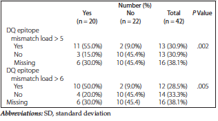 Table 7. DQ Epitope Mismatch Load Cutoff for Development of DQ Donor-Specific Antibodies