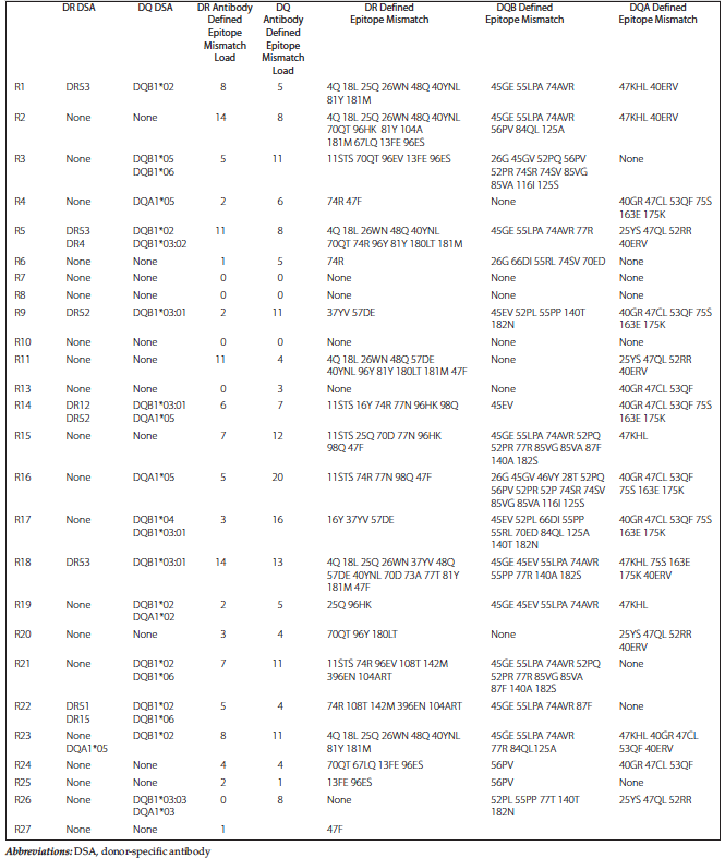 Table 8. Epitope Specificities of De Novo Donor-Specific Antibodies