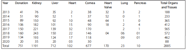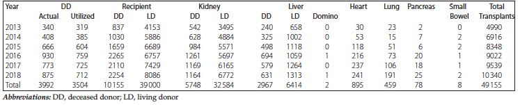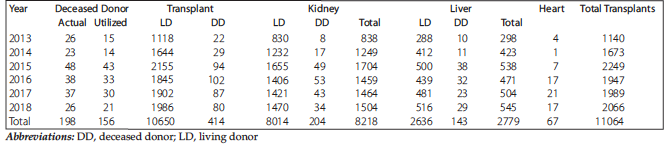Table 1. Organ Donation and Transplant in India (January 1, 2013, to December 31, 2018)1