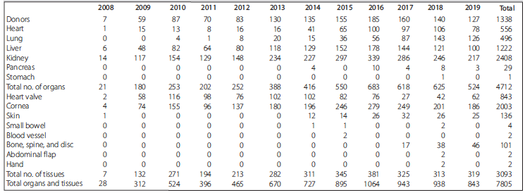 Table 7. Tamil Nadu Deceased-Donor Organ Donation Data: January 2008 to December 2019