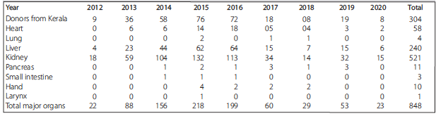 Table 9. Kerala Deceased-Donor Transplant Data (August 2012 to June 2020)