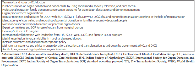 Table 10. Pathway to Facilitate Increased Rate of Organ Donation in India