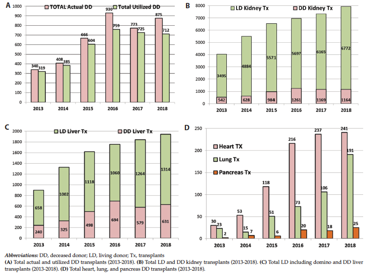 and utilized deceased donor (Figure 1A), kidney (Figure 1B), liver (Figure 1C),