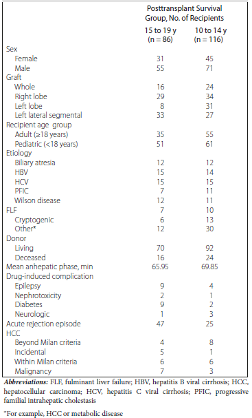 Table 1. Data for Liver Transplant Recipients Who Survived 20 Years or More