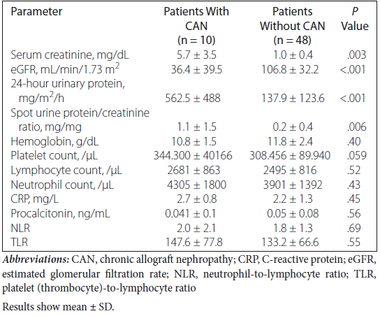 Table 2. Laboratory Parameters in Patients With and Without Chronic Allograft Nephropathy at Year 5 After Kidney Transplant
