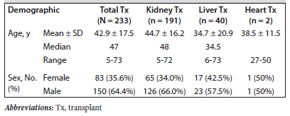 Table 1.Demographic Characteristics of Transplant Patients