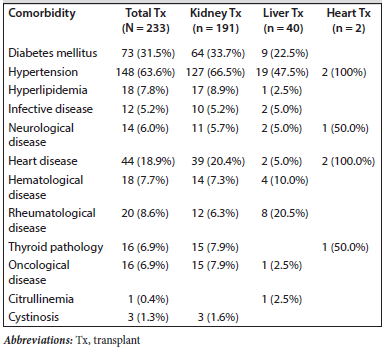 Table 2.Comorbidities of Transplant Recipients