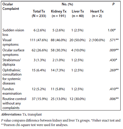 Table 4.Ocular Complaints of Transplant Recipients