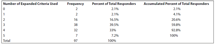 With regard to use of the modified apnea test, 40.2% of those surveyed routinely used this test and 26.8% only used this test when the donor had acute respiratory distress syndrome.11,12