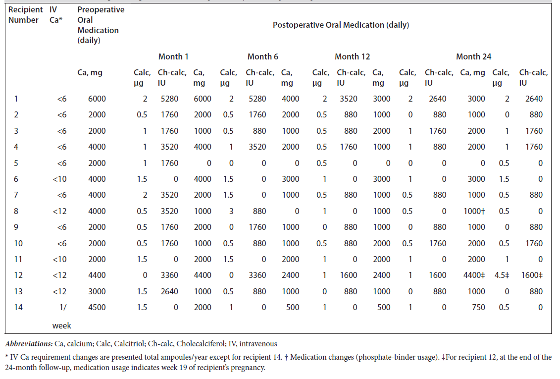 Table 3.Oral Medication Changes During 24-Month Follow-Up of Parathyroid Transplant Recipients