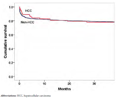 Finally, survival rates of our patients in the HCC group were acceptable in the Milan era with no significant difference versus the non-HCC group, which is compatible with other studies.8,9