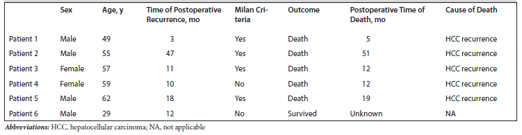 Table 2. Detailed Data of Patients With Recurrence of Hepatocellular Carcinoma