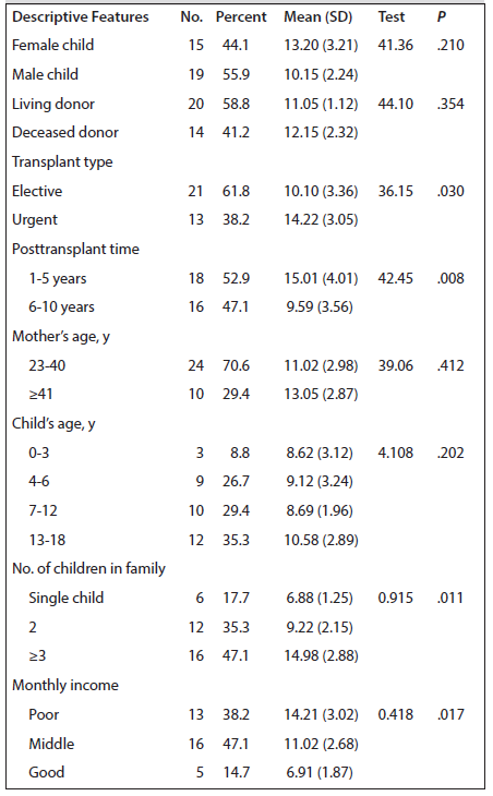 Organ transplant has become more common in recent years for treatment of certain chronic diseases. Because organ failure is often the result of a number of autosomal-recessive inherited diseases, it is expected that organ transplant will be more prevalent in our country because of the high rate of consanguineous marriages.3 Changes in the child’s pretransplant physical condition, increased financial problems, and psychological effects that the treatment process could create can negatively affect not only the child who undergoes organ transplant but also the parents, siblings, and the close family members of the child.4