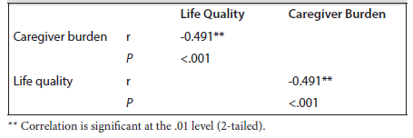 In the examination of the relationship between caregiver burden and quality of life, an increase in caregiver burden had a significant negative impact on quality of life (P < .05) (Table 3).