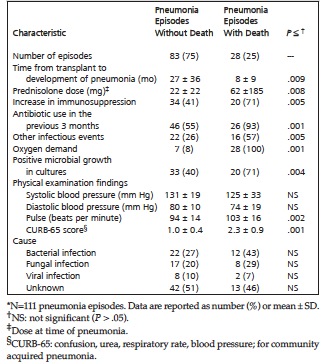 Table 2. Characteristics Associated With Death in Kidney Transplant Recipients Who Had Pneumonia Episodes*