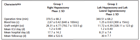 intensive care unit for right lobe donors was 1.2 ± 0.4 days, and the mean