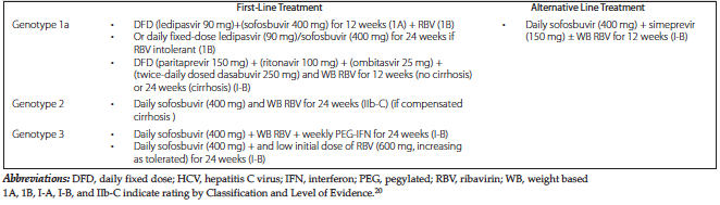 Table 2. Summary of the Recommended Initial Treatment of Hepatitis C Virus Infection According to Genotype20