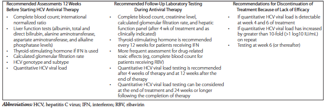 Table 4. Recommended Follow-Up Measures of Hepatitis C Virus Patients During Antiviral Therapy20