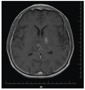 Figure 3. Patient 3: Bilateral Thalamic Abscesses