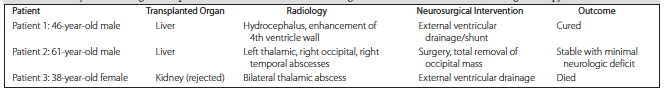Table 1. Summary of 3 Solid-Organ Transplanted Patients Who Received Neurosurgical Intervention in Addition to Antifungal Therapy